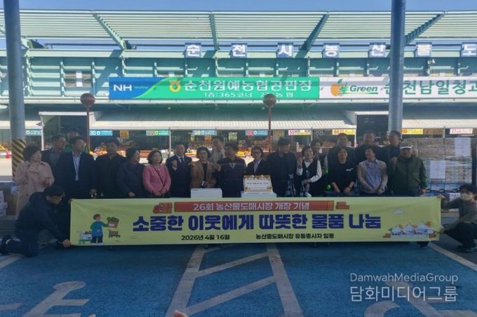 시민행정신문 강갑수 기자 | 순천시농산물도매시장은 16일 개장 26주년(개장일 2001년 4월 18일)을 맞아 기념행사 대신 지역사회를 위한 따뜻한 나눔 활동을 펼쳤다.