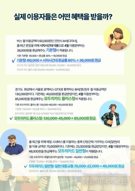 국토교통부 대도시권광역교통위원회는 대중교통 이용을 촉진하고, 교통비 부담을 절감하기 위해 모두의카드(정액제) 환급 기준금액을 50% 인하한다.