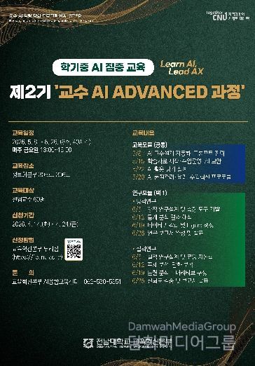 신청은 2026년 4월 14일부터 4월 24일까지 교육혁신본부 누리집 내 AI ADVANCED 과정 게시판을 통해 신청할 수 있다.