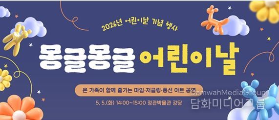 시민행정신문 강갑수 기자 | 부산시립박물관 소속 정관박물관은 오는 5월 5일 '제104회 어린이날'을 맞아 온 가족이 함께 즐길 수 있는 기념 행사 '몽글몽글 어린이날'을 개최한다고 밝혔다.