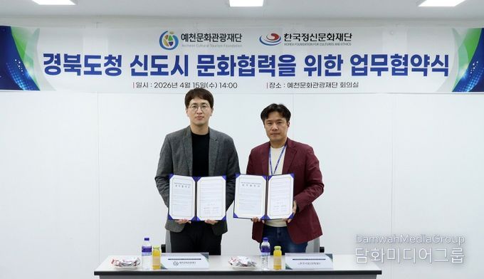 시민행정신문 강갑수 기자 | (재)한국정신문화재단과 (재)예천문화관광재단이 안동과 예천을 잇는 광역 연계 생활권 기반 문화협력의 물꼬를 텄다. 양 기관은 지난 15일 예천군문화회관에서 ‘경북도청 신도시 문화협력을 위한 업무협약(MOU)’을 체결하고, 공동 문화사업 추진을 위한 상호 협력 체계를 구축했다고 밝혔다.