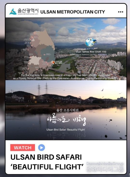 이에 철새이동경로파트너십(EAAFP)은 지난 4월 13일부터 ‘울산 조류사파리’ 홍보영상 영어 자막판(버전)을 페이스북, 인스타그램, 엑스(X, 구 트위터), 링크드인 등 국제기구 공식 관계망(채널)에 게시하고 있다.