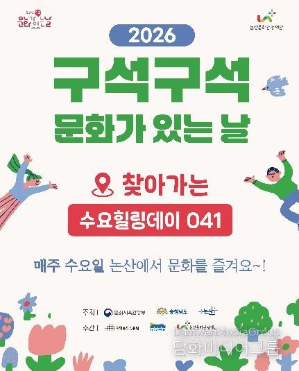 ‘문화가 있는 날’이 매주 수요일로 확대됨에 따라, 논산시는 군 인프라가 밀집된 지역 특성을 반영해 군부대 및 산업단지 등 문화취약지역을 중심으로 정서 치유형 프로그램과 산업단지 근로자 대상 조직문화 개선 및 소통 프로그램 등 공연·체험형 문화예술 프로그램을 운영하여 시민의 문화향유 기회를 넓히고자 한다.