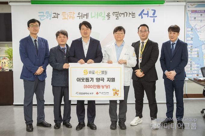 시민행정신문 강갑수 기자 | 인천 서구는 지난 16일 바로서구병원(대표원장 유범석·김훈철)으로부터 취약계층 지원을 위한 양곡(500만 원 상당)을 전달받았다고 밝혔다.