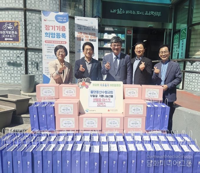시민행정신문 강갑수 기자 | 의정부시 장암동주민센터는 4월 16일 물댄동산수림교회가 부활절을 맞아 지역 내 어려운 이웃을 위해 ‘기쁨나눔선물 세트’와 마스크 50상자를 기탁했다고 밝혔다.