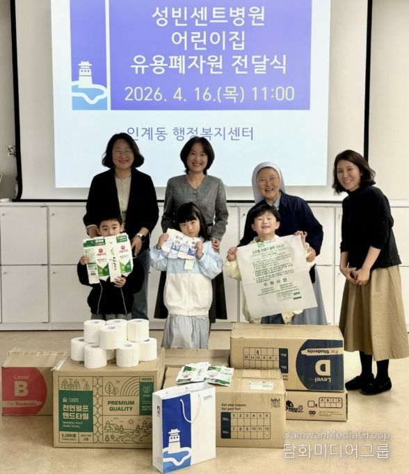 시민행정신문 강갑수 기자 | 수원시 팔달구 인계동은 지난 16일 오전, 성빈센트병원 어린이집으로부터 아이들이 정성껏 모은 유용 생활 폐자원을 전달받았다고 밝혔다.