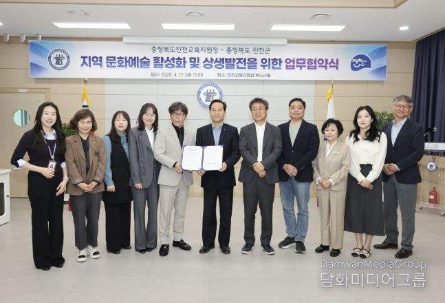 시민행정신문 강갑수 기자 | 충북 진천군과 진천교육지원청은 17일 진천교육지원청 온누리홀에서 ‘지역 문화예술 활성화와 상생발전’을 위한 업무협약을 체결했다고 밝혔다.