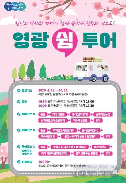 시민행정신문 강갑수 기자 | 영광군은 4월 18일부터 10월 31일까지(7∼8월 폭염으로 제외) 토요 감성 힐링 여행‘2026년 영광 쉼 투어’를 매주 토요일 운영 한다고 밝혔다.