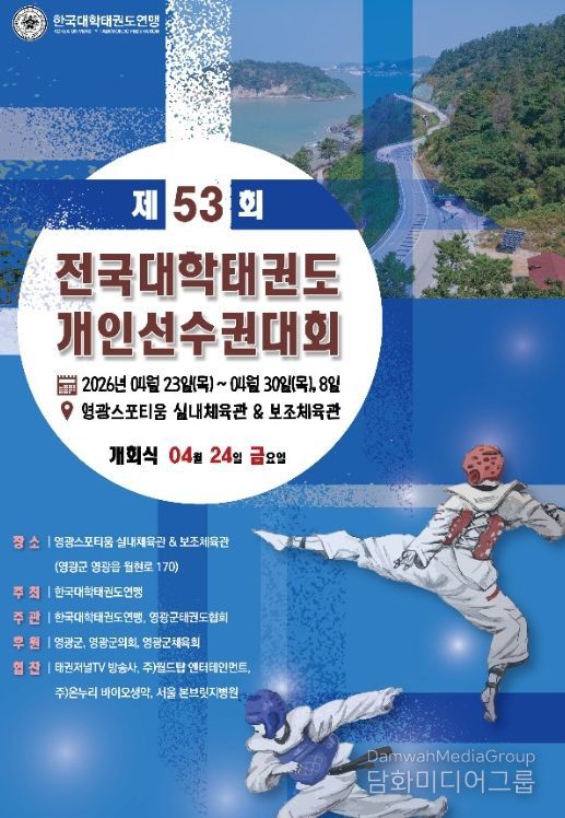 시민행정신문 장규호 기자 | 영광군이 오는 23일부터 30일까지 8일간 제53회 전국대학태권도 개인선수권대회를 영광스포티움 국민체육센터 및 실내보조체육관에서 개최한다고 밝혔다.