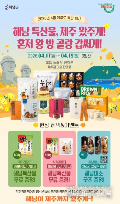 특히 이번 행사에서는 소비자 참여를 높이기 위한 다양한 이벤트도 함께 마련됐다. 행사 기간 동안 5만원 이상 구매 고객에게는 해남 특산물을 증정하며, 10만원 이상 구매 고객에게는 1+1 해남 특산물 추가 증정 혜택을 제공한다. 또한 해남군 SNS 팔로우 시 해남미소 기념품을 증정하는 이벤트를 통해 현장 방문객들에게 즐거움을 더할 예정이다.
