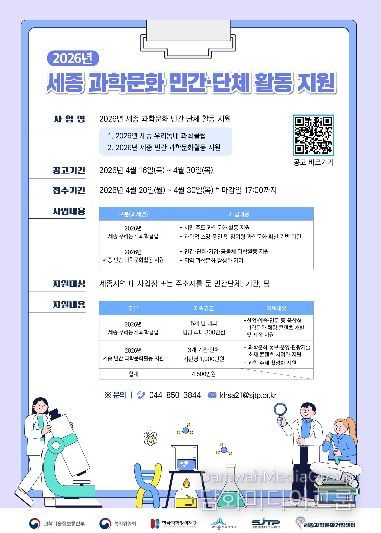 사업 참여를 희망하는 단체는 4월 30일 오후 5시까지 세종과학문화거점센터 홈페이지를 통해 접수하면 된다.