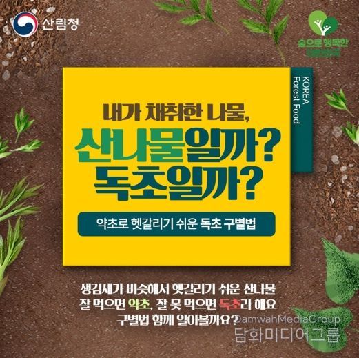"독초와 산나물을 잘 구별해 올바른 봄철 산나물 섭취하시길 바라며 정확한 식물 구별이 어려운 경우에는 식용을 삼가주세요!"