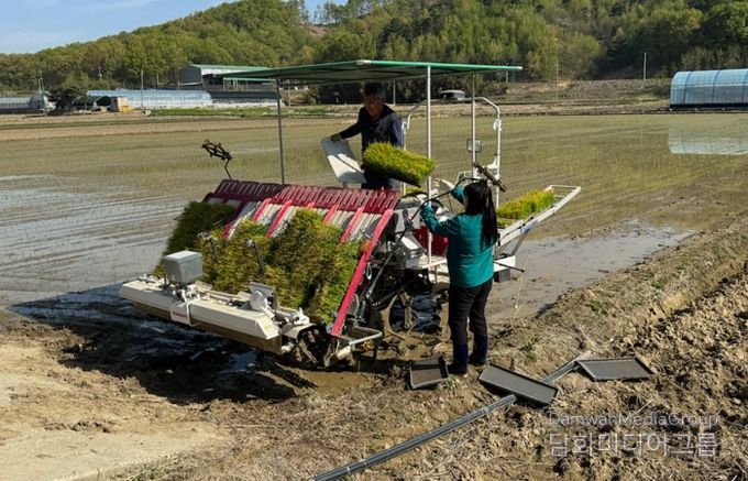 이날 모내기는 조생종 품종인 ‘해담벼’로 진행됐다. 기후 변화에 따른 재배 환경 불확실성에 대응하고 안정적인 쌀 생산 기반을 확보하기 위해 통상적인 이앙 시기보다 앞당겼다.