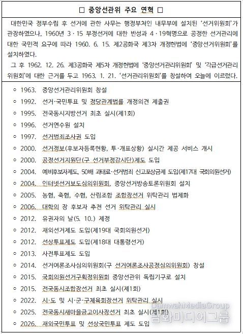 노태악 위원장은 “우리 위원회는 3·15 부정선거에 대한 반성과 4·19 민주이념을 기반으로 1963년 창설된 이래 헌법이 부여한 책무를 충실히 수행하기 위해 계속 노력해왔다”면서, “이번 지방선거도 공정한 선거관리를 바라는 국민의 눈높이에서 차질 없이 관리하기 위하여 더욱 철저히 준비하겠다”라고 밝혔다.
