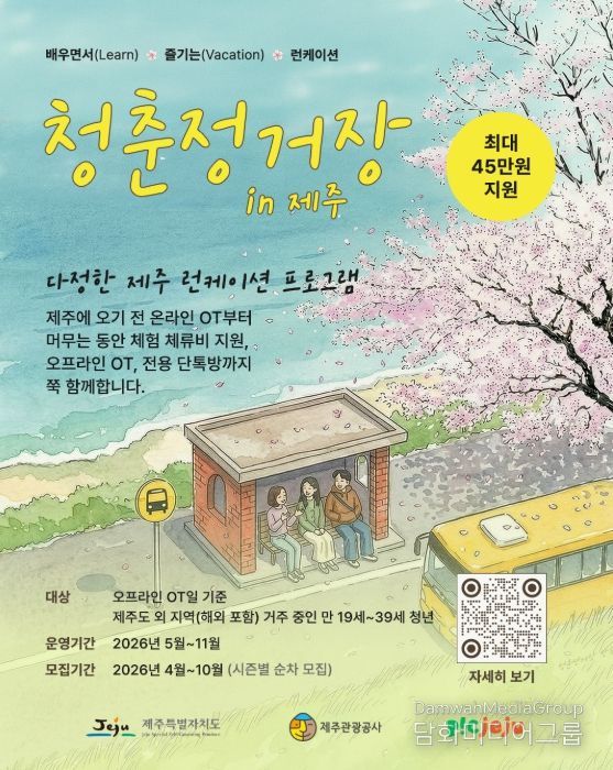 시민행정신문 이세훈 기자 | 제주특별자치도와 제주관광공사(사장 고승철)는 오는 5월 3일까지 제주인구정책 통합플랫폼을 통해 도외 거주 청년을 대상으로 제주에서 배우며 방학을 즐길 런케이션 참가자를 모집하고 있다고 17일 밝혔다.