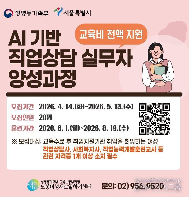 시민행정신문 강갑수 기자 | 서울 도봉구가 도봉여성센터에서 ‘AI 기반 직업상담 실무자 양성과정’을 운영한다고 밝혔다. 대상은 직업상담사, 사회복지사, 직업능력개발훈련교사 등의 자격증을 소지하고, 취업지원 분야로 취업을 희망하는 여성 구직자다.
