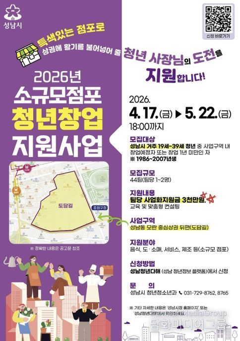 신상진 성남시장은 “도담길에 3년 연속 청년창업을 집중적으로 지원해 점포 밀도를 높이고 상권의 자생력을 확보하겠다”면서 “개별 창업 지원을 넘어 성수동 같은 지역 브랜드 상권으로 성장하게 될 것으로 기대한다”고 말했다.