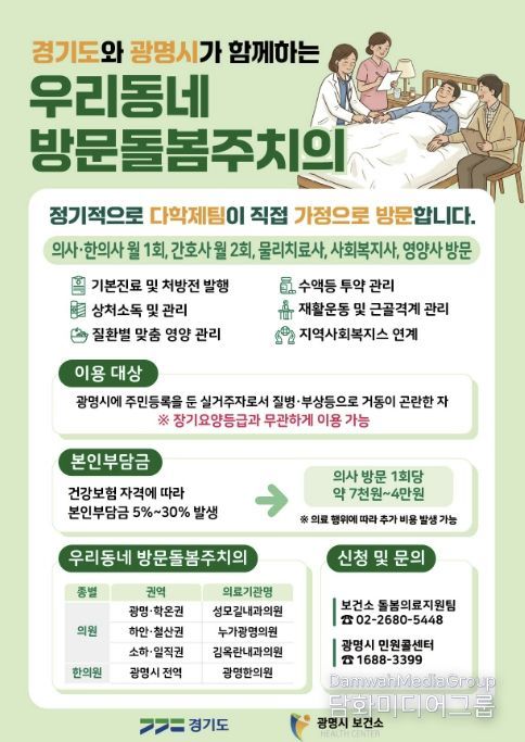 시민행정신문 강갑수 기자 | 장기요양등급이 없는 광명시민도 집에서 방문돌봄주치의 진료를 받을 수 있게 된다.
