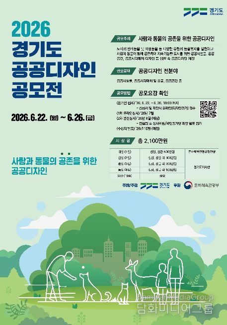 시민행정신문 강갑수 기자 | 경기도가 ‘사람과 동물의 공존을 위한 공공디자인’이란 주제로 제20회 ‘2026년 경기도 공공디자인 공모전’을 6월 22일부터 26일까지 개최한다.