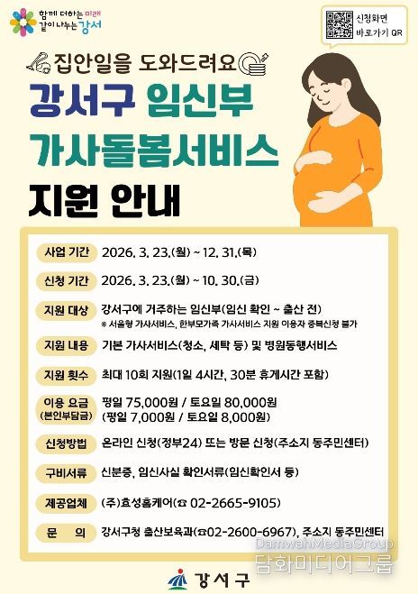 구 관계자는 “임신부들이 가사 노동 부담을 덜고, 태교와 건강 관리에 집중할 수 있도록 지원을 확대했다”며, “앞으로도 저출산 극복과 아이 키우기 좋은 강서구를 만들기 위해 실질적인 복지 정책을 지속 발굴하겠다”고 말했다.