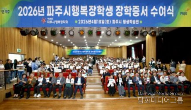 시민행정신문 강갑수 기자 | 파주시는 (재)파주시행복장학회가 지난 18일 파주시 평생학습관 대공연장에서 학부모와 장학생 등 200여 명이 참석한 가운데 2026년 장학증서 수여식을 개최했다고 밝혔다.