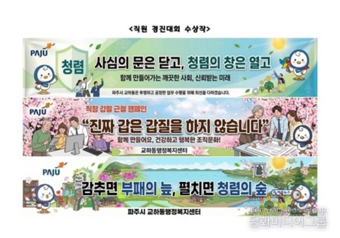 권예자 교하동장은 “직원들이 자발적으로 참여해 인공지능(AI)이라는 새로운 도구를 활용하고, 청렴의 가치를 창의적이고 친근하게 표현해낸 점이 이번 대회의 가장 큰 성과”라며, “앞으로도 변화하는 행정 환경에 능동적으로 대응하며 역량을 강화하고, 교하동 행정의 맑고 투명한 가치를 지역사회 전체로 지속 확대·확산하는 데 최선을 다하겠다”라고 밝혔다.