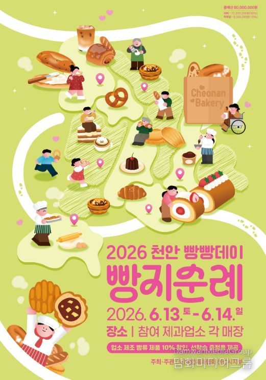 시민행정신문 강갑수 기자 | 천안시는 오는 6월 13일부터 14일까지 이틀간 열리는 ‘2026 천안 빵지순례 빵빵데이’에 참여할 순례단 450팀을 내달 4일까지 모집한다고 20일 밝혔다.