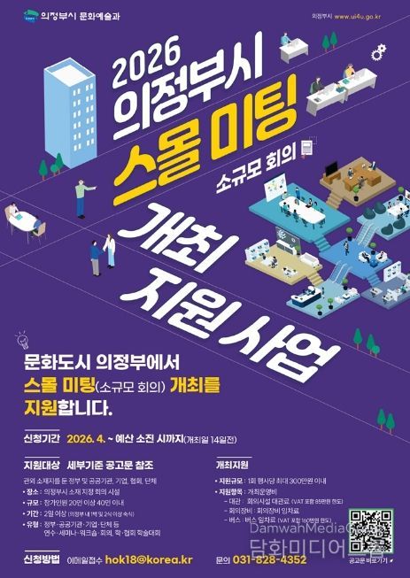 시민행정신문 강갑수 기자 | 의정부시는 관외에 소재지를 둔 기관 및 단체 등을 대상으로 ‘2026 의정부시 스몰미팅(소규모 회의) 개최 지원사업’을 추진한다.