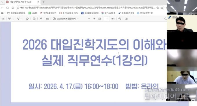 시민행정신문 기자 | 경기도파주교육지원청은 급변하는 대입 환경에 발맞추어 교원의 대입진학지도 전문성을 높이고 학생 맞춤형 진학 교육을 실현하기 위하여 '2026 대입진학지도의 이해와 실제 직무연수'를 운영한다.