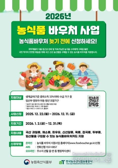 시민행정신문 기자 | 서귀포시는 취약계층의 영양 불균형 해소와 국내산 농축산물 소비 촉진을 위해 ‘2026년 농식품 바우처 지원사업’ 미신청 가구를 대상으로 신청 독려에 나선다.