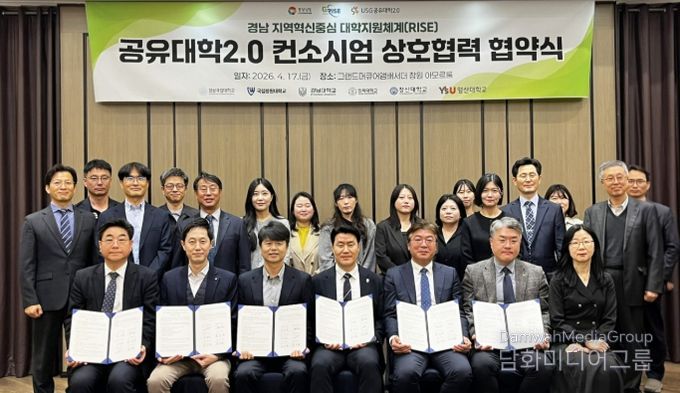 시민행정신문 강갑수 기자 | 경상국립대학교 라이즈(RISE) 사업단 지역교육혁신센터는 4월 17일 창원 그랜드머큐어호텔에서 ‘공유대학2.0 컨소시엄 과제’ 참여대학 간 상호 협력 협약(MOU)을 체결했다.