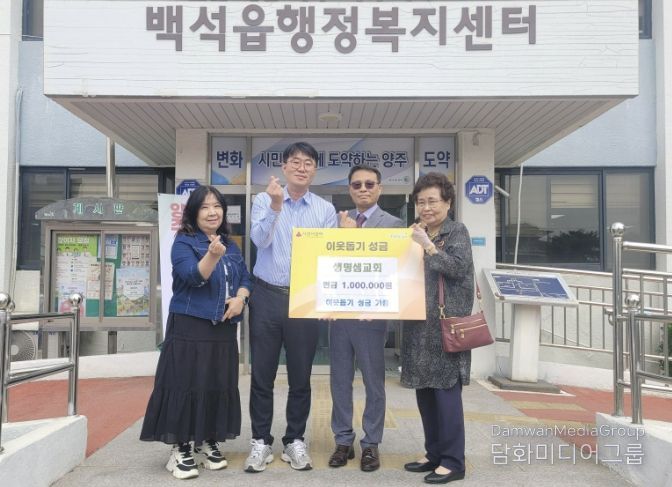 시민행정신문 강갑수 기자 | 양주시 백석읍은 지난 17일 생명샘교회가 지역 내 어려운 이웃을 돕기 위한 성금 100만 원을 기탁했다고 밝혔다.