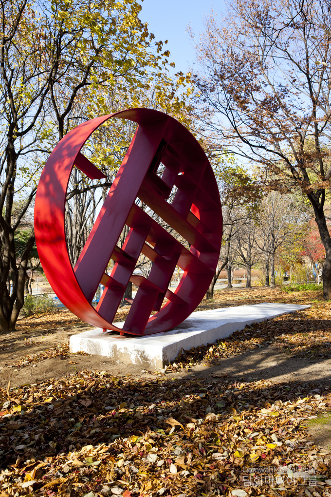 붉은 철의 강렬함은 생명력과 에너지를 상징하고, 가을 낙엽과 어우러진 풍경은 시간의 흐름을 말해준다. 자연 속에 놓인 이 인공 구조물은 결코 이질적이지 않다. 오히려 자연과 조화를 이루며, 인간이 만들어낸 예술이 어떻게 환경과 공존할 수 있는지를 보여준다.