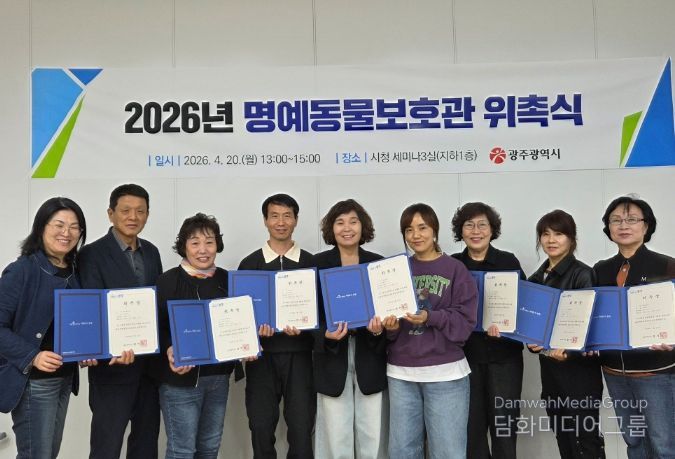 시민행정신문 강갑수 기자 | 광주광역시는 20일 시청 세미나실에서 성숙한 반려동물 문화 정착과 동물복지 증진을 위한 ‘2026년 명예동물보호관 위촉식’을 개최했다.