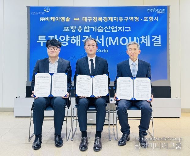 시민행정신문 이세훈 기자 | 포항시와 대구경북경제자유구역청은 20일 ㈜비케이엠솔과 포항융합기술산업지구 내 투자 유치를 위한 양해각서(MOU)를 체결했다.