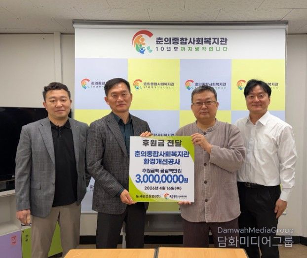 시민행정신문 강갑수 기자 | 도시환경실업(주)는 지역사회 복지환경 개선과 나눔 문화 확산을 위해 춘의종합사회복지관에 환경개선공사 후원금 300만원을 전달했다. 이번 후원은 복지관 시설 환경을 개선해 지역 주민들이 보다 안전하고 쾌적한 환경에서 복지서비스를 이용할 수 있도록 지원하기 위해 마련됐다.