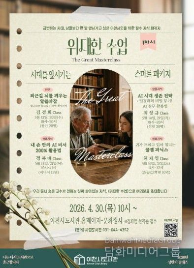 시민행정신문 기자 | 이천시립도서관은 오는 4월 30일부터 2026년 상반기 시민강사 프로그램 ‘위대한 수업’의 1차 수강생을 모집한다고 밝혔다.