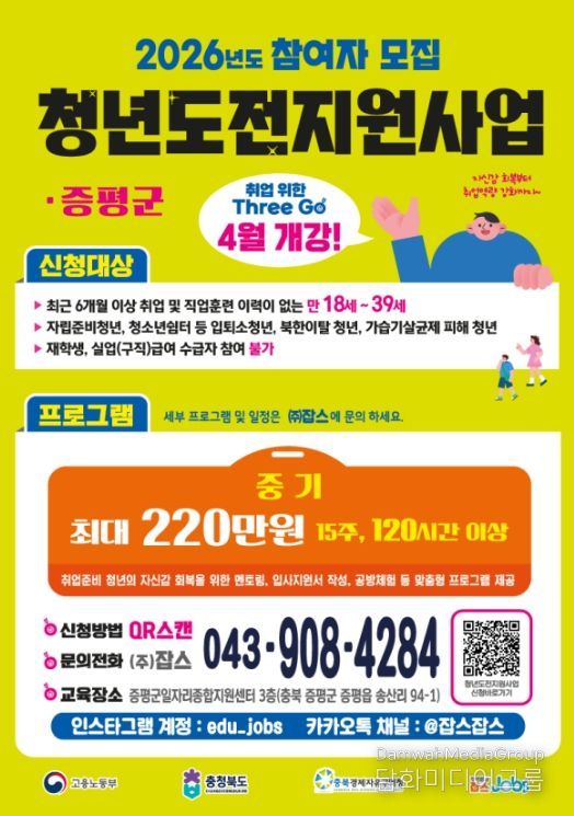 신청은 홍보물에 안내된 QR코드를 통해 가능하며, 세부 일정과 프로그램 관련 문의는 수행기관인 ㈜잡스로 하면 된다.