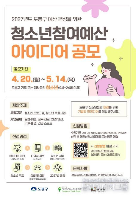 시민행정신문 강갑수 기자 | 서울 도봉구가 ‘청소년참여예산제’ 아이디어 공모를 오는 5월 14일까지 진행한다.
