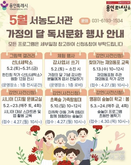 시민행정신문 기자 | 용인특례시 서농도서관은 오는 5월 가정의 달을 맞아 다양한 세대를 아우르는 프로그램으로 이뤄진 ‘2026년 5월 독서문화행사’를 마련했다고 21일 밝혔다.