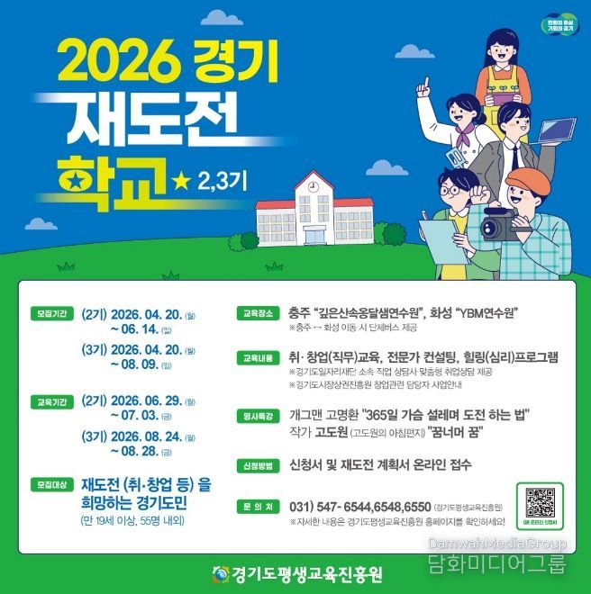 시민행정신문 강갑수 기자 | 경기도와 경기도평생교육진흥원은 취업이나 창업 실패를 경험한 도민의 재기를 지원하기 위해 오는 20일부터 ‘2026년 경기 재도전학교’ 2~3기 참가자를 각각 55명 내외로 모집한다.