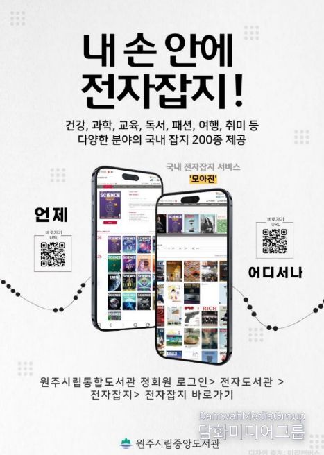 시민행정신문 강갑수 기자 | 원주시립중앙도서관은 디지털 시대에 발맞춰 국내 전자잡지 구독 서비스 ‘모아진’을 운영하고 있다.