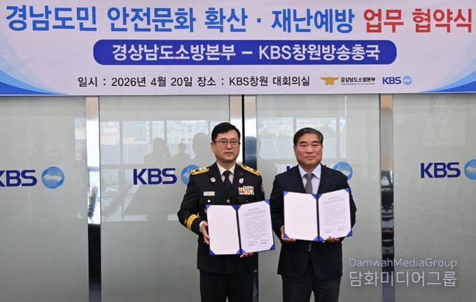 시민행정신문 강갑수 기자 | 경상남도 소방본부는 20일 KBS창원방송총국 회의실에서 도민의 생명과 재산을 보다 촘촘하게 보호하기 위해 KBS창원방송총국과 ‘재난방송 협력 체계 고도화’를 위한 업무협약을 체결했다.