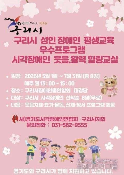 시민행정신문 강갑수 기자 | 사단법인 경기도시각장애인연합회 구리시지회는 구리시와 경기도의 지원을 받아 2026년 5월부터 ‘시각장애인 웃음·활력 힐링 교실’을 운영할 예정이라고 밝혔다.