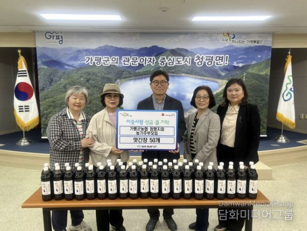 시민행정신문 강갑수 기자 | 가평군농협 청평지점 농가주부모임이 20일 지역 내 어려운 이웃을 위해 직접 만든 맛간장 50개를 청평면에 기탁했다.