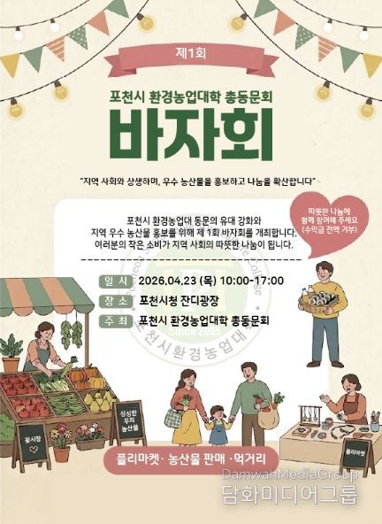 한편, 포천시 환경농업대학은 매년 전문 농업인력을 양성하며 지역 농업 발전의 중추적인 역할을 해오고 있으며, 총동문회는 이번 바자회를 기점으로 지역사회를 위한 다양한 공헌 활동을 이어갈 계획이다.