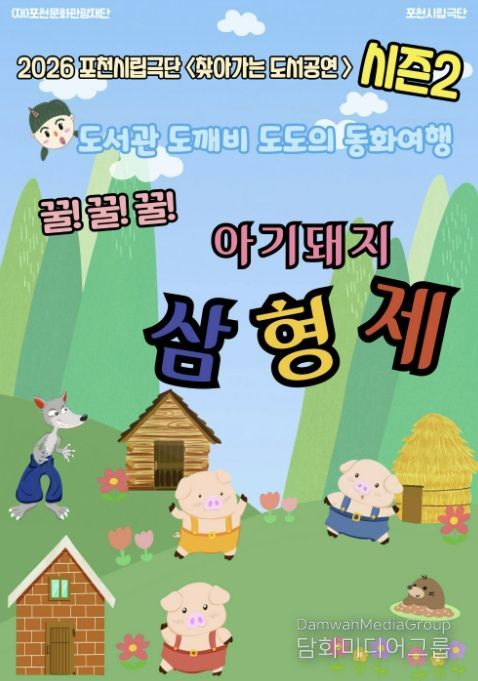 이번 시즌2 공연은 '꿀!꿀!꿀! 아기돼지 삼형제'로, 오는 4월 27일부터 6월 26일까지 면암중앙도서관, 소흘도서관, 가산도서관, 선단도서관, 영북도서관, 일동도서관 등 포천시 관내 시립도서관을 거점으로 진행된다.
