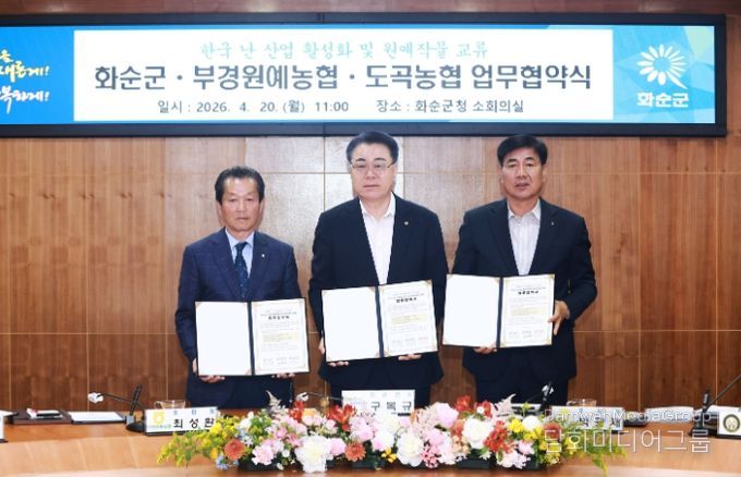 시민행정신문 이세훈 기자 | 화순군은 지난 20일 부경원예농업협동조합(조합장 최성환), 도곡농업협동조합(조합장 박광재)과 함께 한국 난 산업 활성화 및 원예작물 교류를 위한 업무협약(MOU)을 체결했다고 밝혔다.