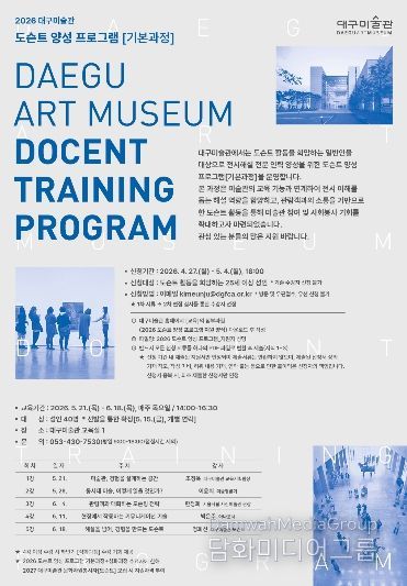 대구미술관 관계자는 “도슨트는 작품과 관람객을 연결하는 중요한 소통 주체”라며 “이번 교육과정을 통해 시민들이 미술관 활동에 적극 참여하고 지역 문화 커뮤니티 형성으로 이어지기를 기대한다”고 말했다.