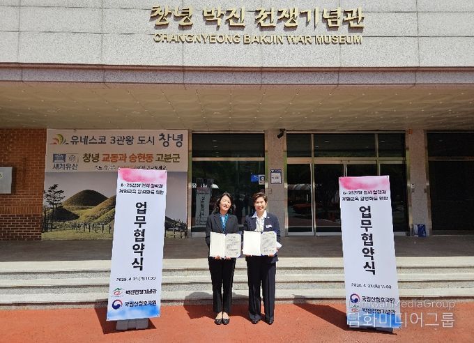 시민행정신문 강갑수 기자 | 창녕군 박진전쟁기념관은 21일, 국립산청호국원(원장 김경나)과 업무협약을 체결하고, 6‧25전쟁의 역사적 가치 계승과 호국보훈 문화 확산을 위한 전시 및 교육 협력 체계를 구축했다.